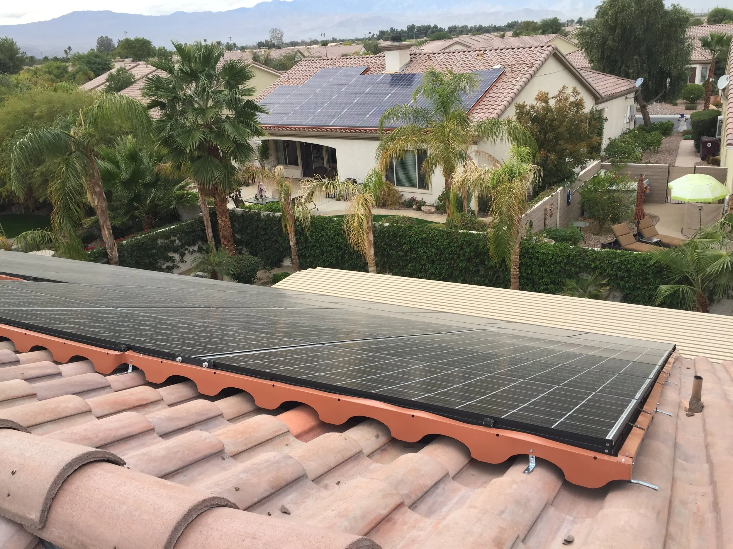 Custom bird barriers installed to prevent pigeons and other birds from nesting under solar panels. This solar panel bird proofing system protects the roof, reduces mess and noise, and helps maintain solar panel efficiency.